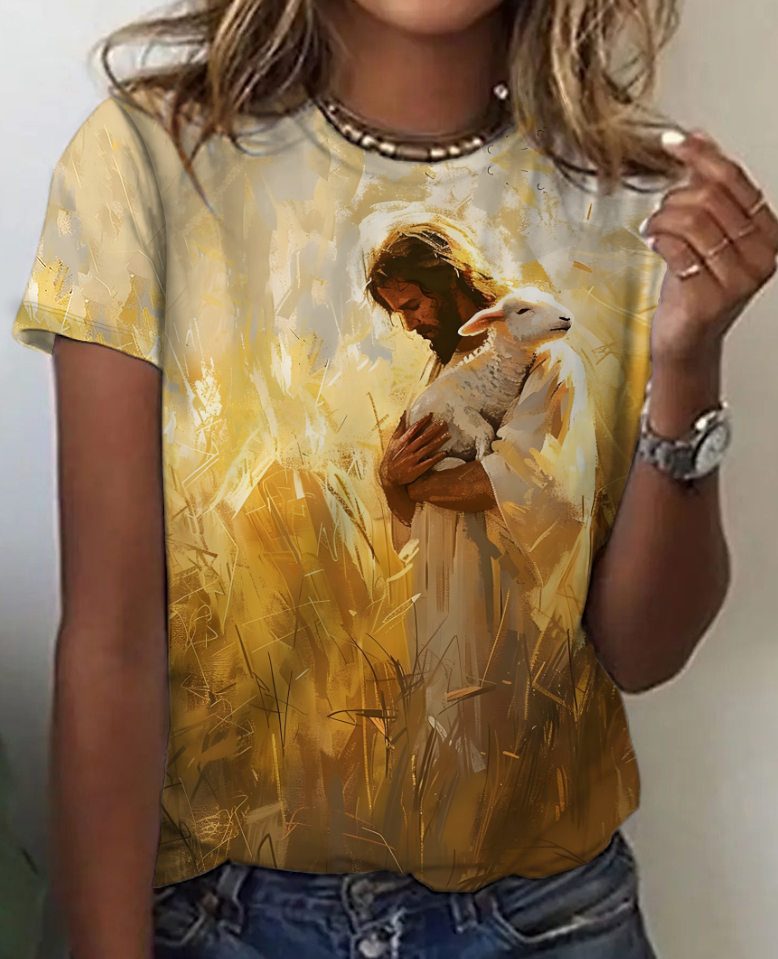 Jesus Credit Art Illustration Print Cotton T-Shirt
